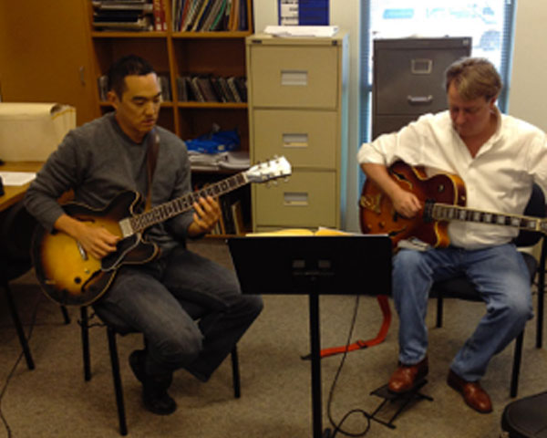 Rehearsing with Brendan Clarke and James Hauptman